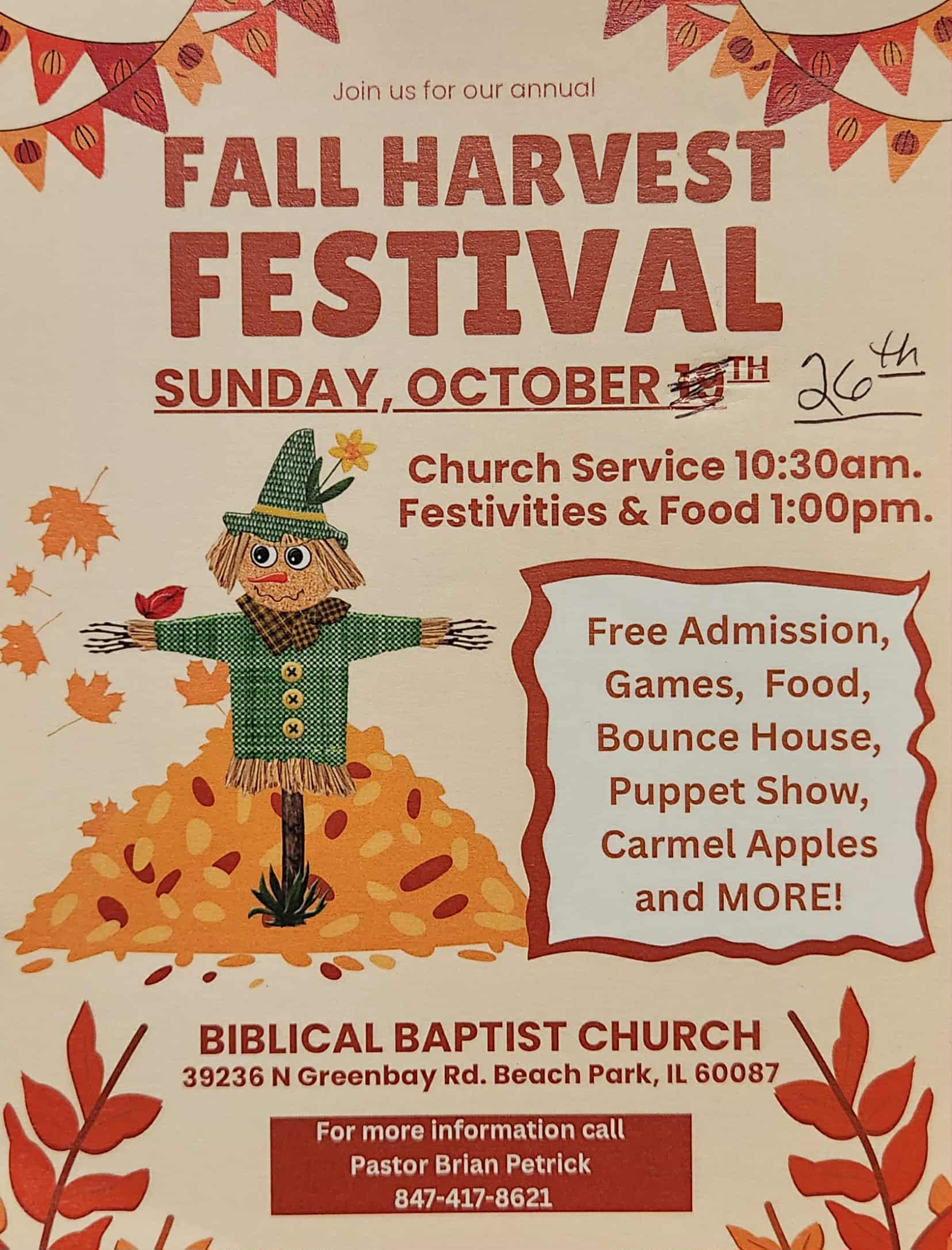 *** FALL FUN FEST HAS BEEN POST-PONED and Changed to SUNDAY Oct. 26th!!!! ***